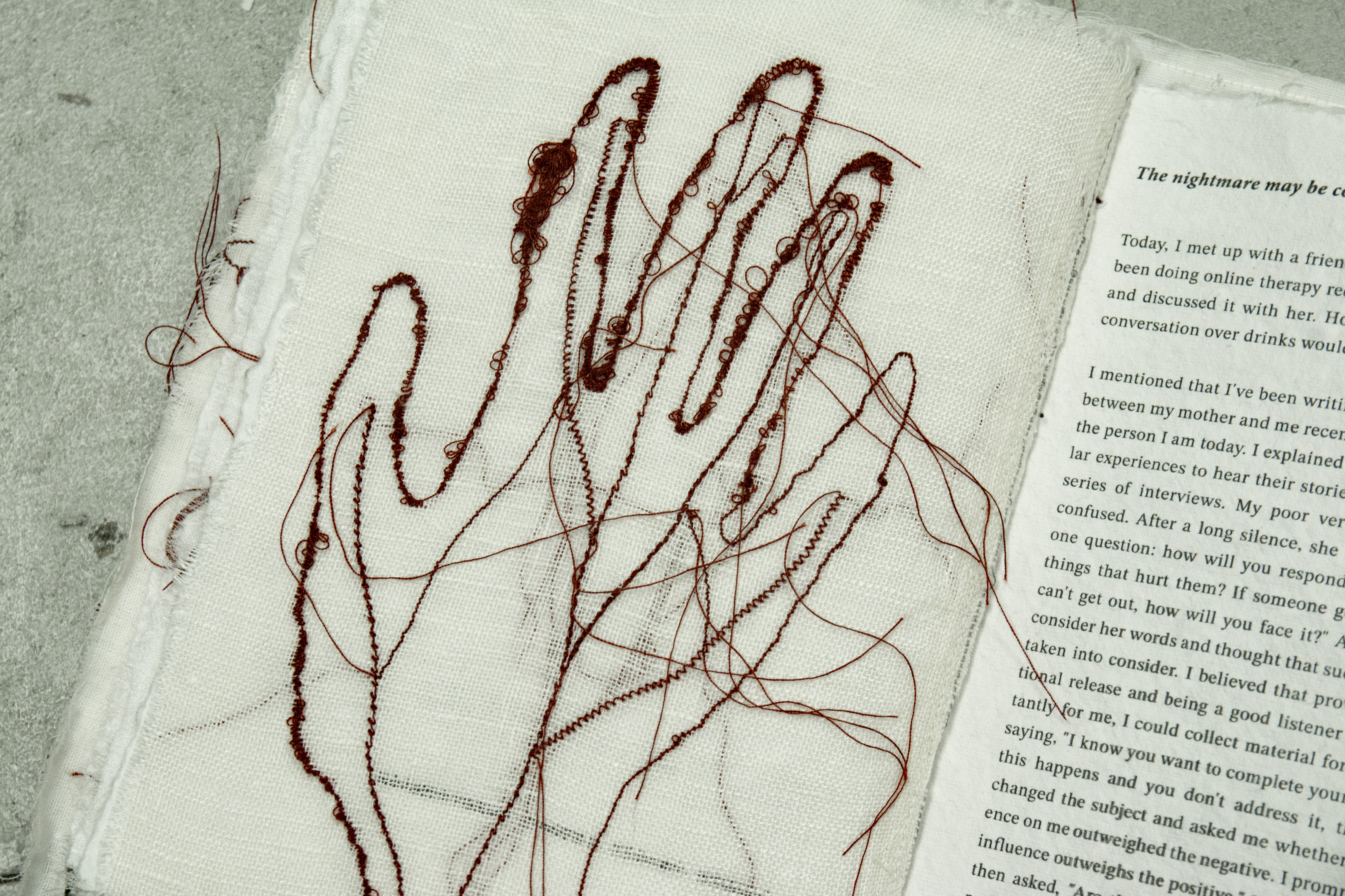 Within the handmade book, I employ a form of self-therapy to recollect various conflicts that occurred between my mother and me, narrating the stories to myself.